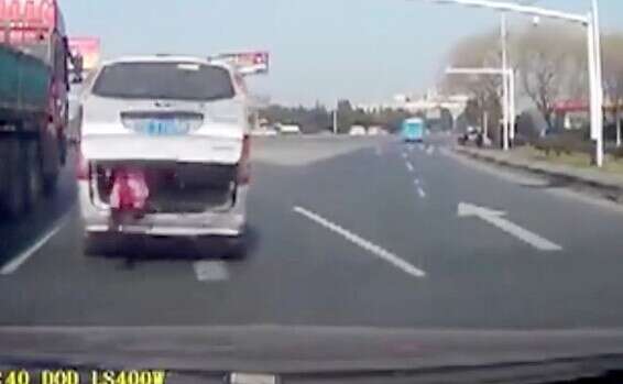 הרגעים המטרידים והדרמטיים, שנתפסו בעדשת מצלמת רכב, מתעדים את הפעוט נופל מתוך תא המטען של רכב ישירות לאמצע כביש עמוס בתנועת רכבים. ניתן לראות כי דלת תא המטען פשוט נפתחת בעת הנסיעה, והתינוק נופל מהרכב.