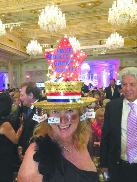 בינתיים, העיתונאים צילמו זה את זה ואת עצמם בתוך המועדון המרשים. פתאום הגיחה גברת לא צעירה בכובע מתוחכם שעליו הרכיבה את הכיתוב: "אנחנו נהפוך את אמריקה לגדולה מחדש" - הסיסמה של טראמפ. בתוך רגעים היא הפכה ללהיט. רשת פוקס ורשתות אחרות עמדו בתור כדי לראיין אותה. גם עבדכם הנאמן שוחח עימה. רוזמרי הארבר שמה. "עשיתי אותו לבד", היא אומרת לי, "כי אני אוהבת את טראמפ. זאת היתה הדרך שלי לבטא את מה שאני מרגישה כלפיו. אני מקווה שזה האיש שילך לבית הלבן. אנחנו לא רק תומכים בו, אנחנו מאוהבים בו". טירוף.
