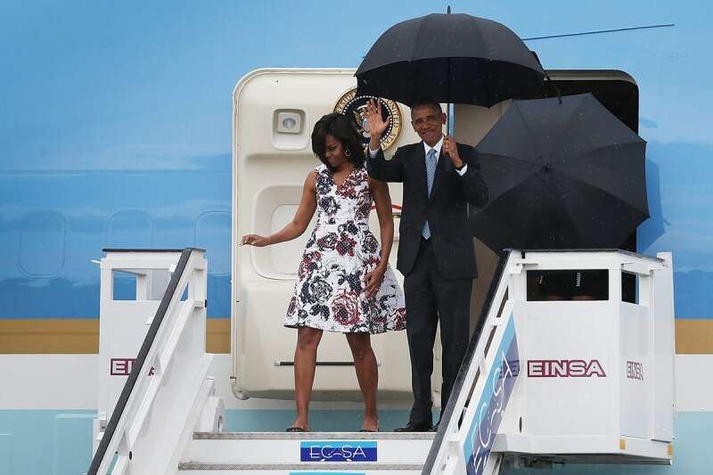 אובאמה ומישל יורדים מהמטוס // צילום: GettyImages