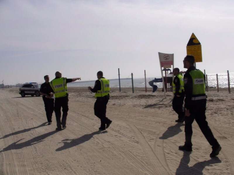 כוחות משטרה בחוף בר כוכבא באשקלון, במסגרת תרגיל "נחשול כחול"