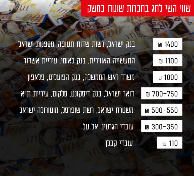 המנהלים הבכירים, לעומת זאת, ייהנו משי לחג גבוה בסכום של 5,000-7,000 שקלים בממוצע.