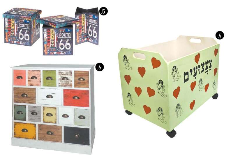 4. ארגז עץ עם גלגלים לצעצועים, 460 ש' בדל ארטה, 5. הדומים מתקפלים לאחסון ברשת אורבן, 99 ש' , 6. שידה עם 16 מגירות צבעוניות, 999 ש' בהרמוניה לבית // צילום: ישראל כהן, אסף לוי