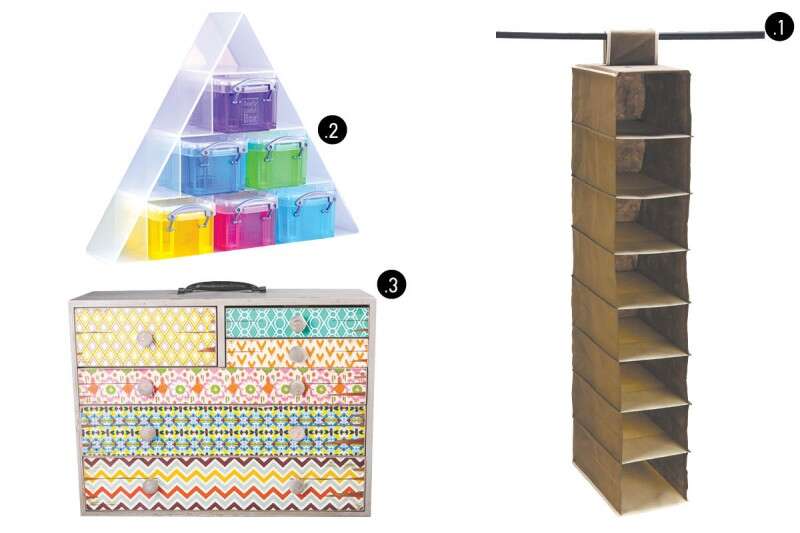 1. ארגונית נתלית שמונה קומות, 35 ש', להשיג ברשת הסטוק, 2. פירמידה צבעונית לאחסון צעצועים, מ־69 ש' בהום סנטר, 3. יחידת מגירות לאחסון בסגנון אתני, 559 ש' ברשת ביתילי // צילום: אפרת אשל