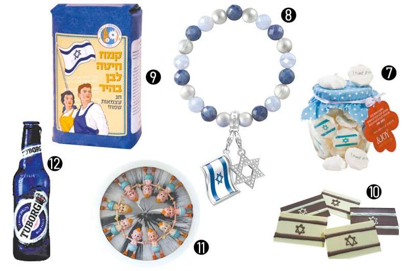 7. צנצנת נשיקות מרנג עם דגלי ישראל, 54 ש'. באתר אנד ג'וי 8. צמיד של המותג תומס סאבו, 608 ש'. להשיג ברשת אימפרס 9. קמח, "הטחנות הגדולות של ארץ ישראל", 5-3 ש' ל־1 ק"ג 10. שוקולד בעיצוב הדגל, בוטיק דה קרינה 19 ש' ל־100 גרם באתר de-karina,