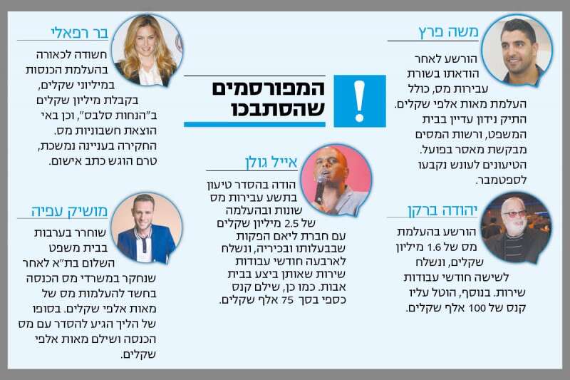 בשנים האחרונות הגבירו ברשות המסים את האכיפה מול המפורסמים, אולי בגלל הסכומים הגבוהים שהם מרוויחים. דווקא הם, שמרוויחים הרבה יותר מהאזרח הפשוט ומגיעים לרווחים של שש ספרות בשנה גם בלי לזכות בלוטו, בוחרים לעבור על החוק ולגנוב את המדינה.