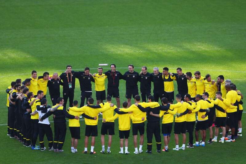שחקני סביליה, אתמול באימון המסכם // צילום: GettyImages