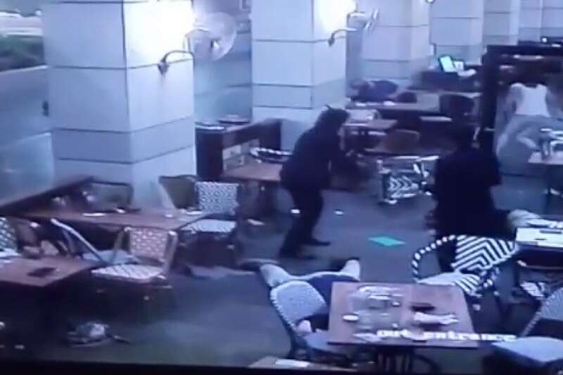 סמוך לשעה תשע וחצי בערב הופרה הפסטורליה במתחם. על פי העדויות, המחבלים עצמם ישבו במסעדת מקס ברנר, לבושים בבגדים אלגנטיים. אחד העובדים במסעדת מקס ברנר סיפר כי לפתע הם קמו והחלו לירות לכיוון מסעדת בנדיקט הסמוכה: "הם הזמינו אוכל. לא היה שום דבר חשוד בהם, ובשלב מסויים הם פשוט קמו והתחילו לירות, הם לא צעקו כלום".