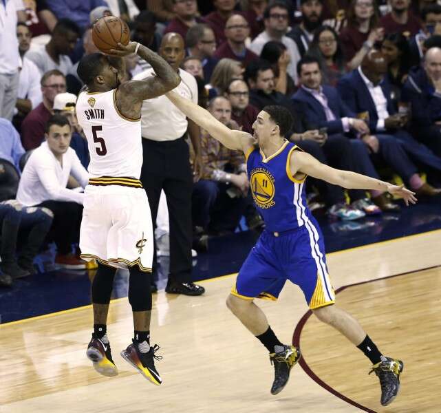 סמית' (משמאל). "כשהוא קולע את השלשות האלו זה פותח את הצבע ללברון"