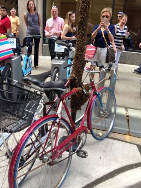 קהל צופים התגודד במרכז העיר שיקאגו כדי לצפות במחזה יוצא דופן: נחיל דבורים נצמד לעמוד חשמל ברחוב, אליו היו קשורים שני זוגות אופניים. הדבורים התאספו בתחילת השבוע על עמוד סמוך לשדרת מישיגן, ומנעו למספר שעות את הגישה לשני רוכבי אופניים, לרוע מזלם.