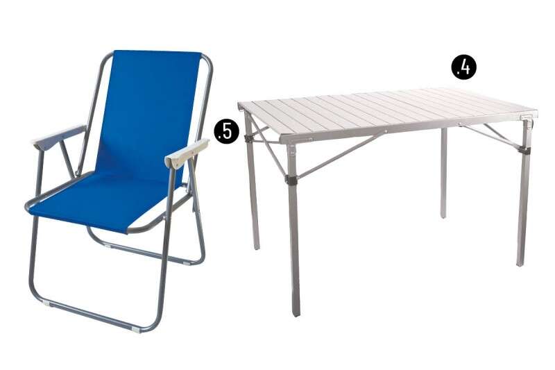 ממשיכים במסע שלנו. בהקמת מחנה השטח בוודאי תרצו גם להתרווח. לשם כך, תמצאו בחנויות מגוון כיסאות ושולחנות ניידים במחירים שונים. כיצד תבחרו נכון? נסו לשבת בעצמכם. לא כל כיסא מתקפל יהפוך את חוויית האכילה שלכם לנעימה. "שבו עליהם בחנות וודאו שהם מתאימים לכם", אומר שחל, "בחרו ציוד שמתקפל לשרוול שלא תופס הרבה מקום ברכב והוא גם קל משקל. שימו לב: כיסאות איכותיים שוקלים אמנם קצת יותר, אבל הם נוחים יותר ומחזיקים מעמד לאורך זמן. יש כיום גם שולחנות מאלומיניום שמתקפלים בקלות, קלי משקל, יציבים ונוחים לאחסון בבית".