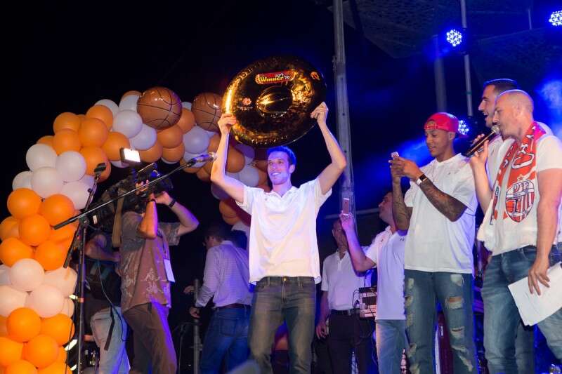 חנוכי מניף את הצלחת, אתמול בראשל"צ // צילום: עודד קרני