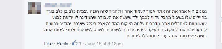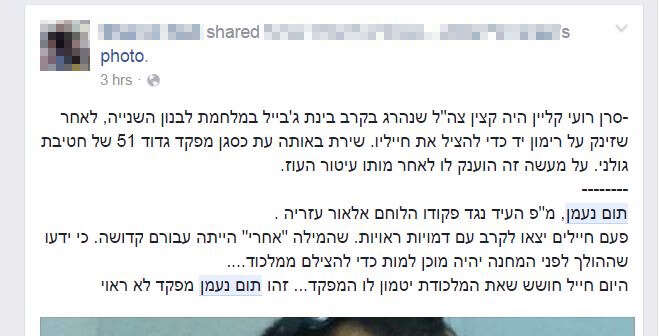 קריאות נאצה נגד רס"ן תום נעמן // צילום מסך פייסוק