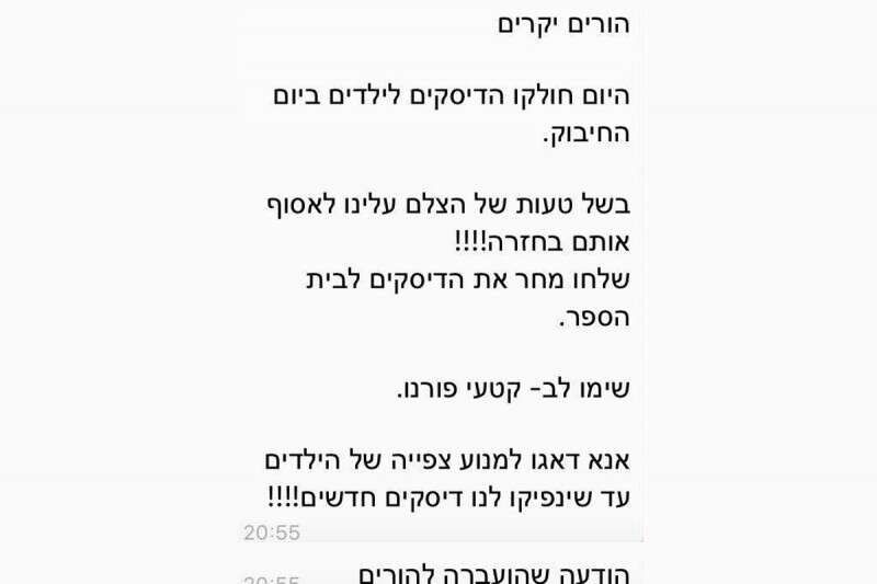 ההודעה שנשלחה להורים