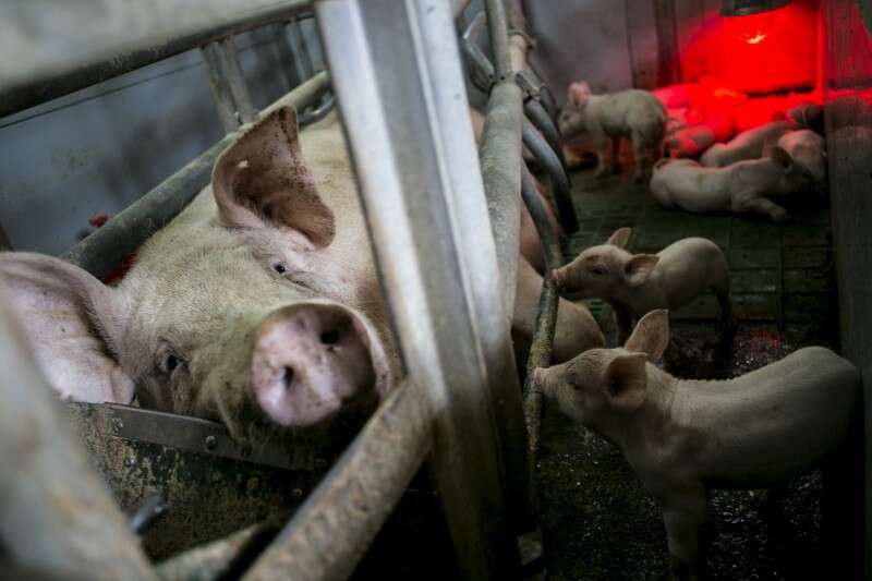 חזירות מיניקות מוחזקות במתקן ריסון מעבר לזמן המותר // צילום: קירות שקופים