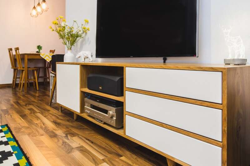 הקו המנחה שבחרו הוא מינימליסטי ונקי, בשילוב של אלמנטים גרפיים וצורות גאומטריות. כך למשל, כבר בכניסה לדירה מקדמת אותנו בברכה שידה בעלת רגליים ארוכות בסגנון רטרו, כשעליה מונחות שתי בובות כלבים מקיפולי נייר שהכינה איילת ודגם מיניאטורי של תיבת דואר. עדות נוספת לאהבתה של איילת לעבודות יצירה ניתן לראות גם מימין לשידה, כשביקשה לתחום את האזור שמתחת למזגן. בעזרת חתיכות וואשי-טייפ שגזרה יצרה קישוט לקיר, ולהשלמת המראה הפופ-ארטי הניחה פירות מקיפולי נייר על גבי פטיפון ישן (שעדיין עובד!) אותו הביא תומר מבית סבתו.
