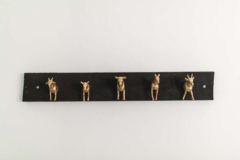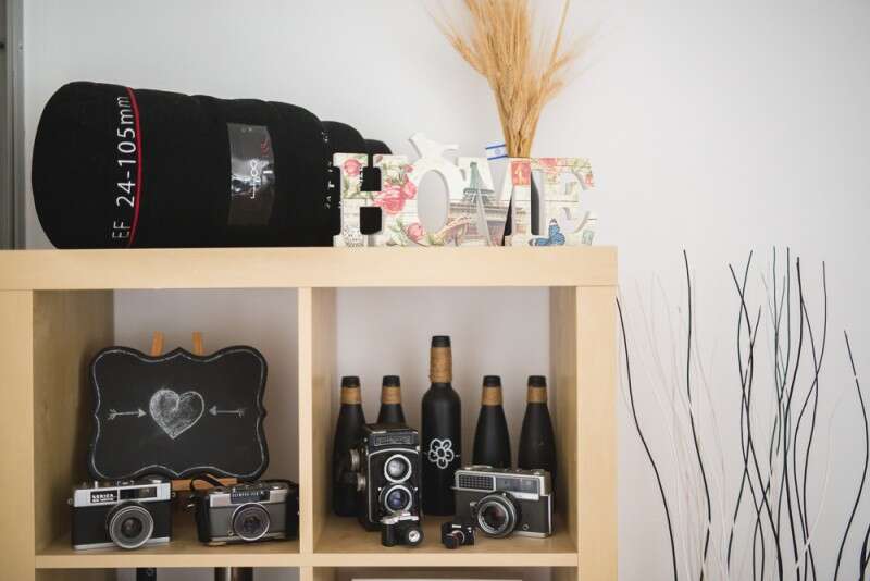 בצידו השני של החלל ניצבת כוורת אותה מילאו בפריטים מעולם הצילום - מצלמות מיניאטוריות, מצלמות פילם ישנות וכרית בצורת עדשת ענק שמונחת על המדף העליון. על הקיר הסמוך תלוי מתלה דקורטיבי ,שהכינה איילת מקרש עץ וחיות פלסטיק שצבעה בצבע זהב.
