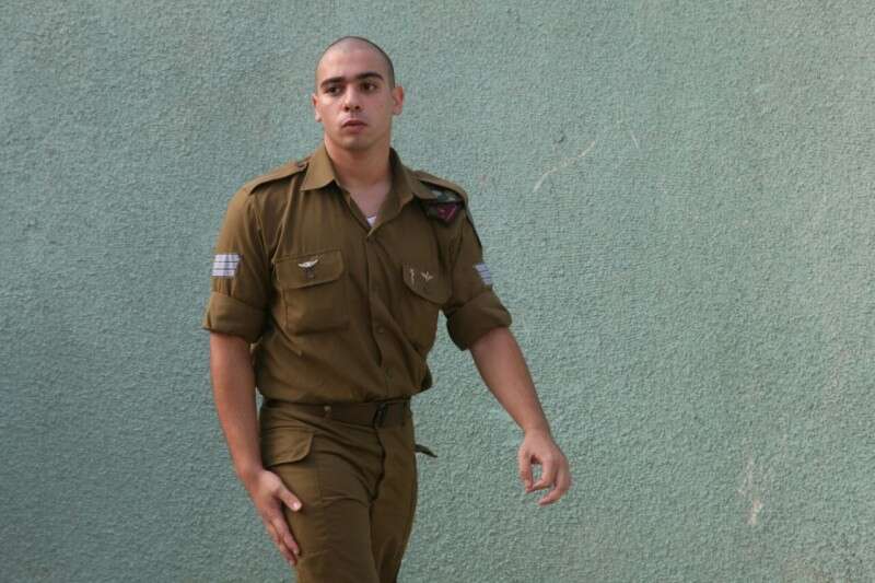 אזריה בכניסה לבית הדין הצבאי ביפו, הבוקר // צילום: גדעון מרקוביץ'