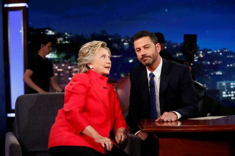קלינטון בתוכניתו של ג'ימי קימל. הגיבה בהומור על הטענות // צילום: רויטרס