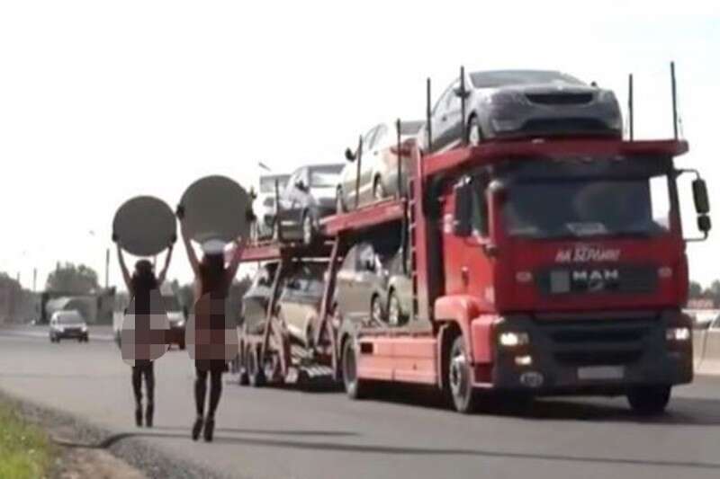 רוסיה: נשים חשופות חזה נשלחו לרחובות, בניסיון לגרום לנהגים להאט. הרעיון המוזר הושק על ידי מסע פרסום להעלאת מודעות לבטיחות בדרכים ברוסיה - שמארגניו הצהירו כי מדובר בדרך הטובה ביותר להפחית מהירות מופרזת.