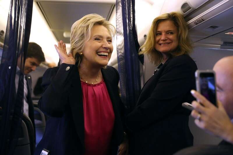קלינטון במטוס הקמפיין // צילום: אי.אף.פי