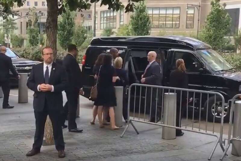 ואכן, דקות לאחר שיצאה הודעת ההרגעה תועדה הילארי כשהיא יוצאת מהבית, מחייכת ומנופפת לעוברים ושבים. "אני מרגישה נהדר", אמרה רגע לפני שנעלמה לתוך מכוניתה, "זהו יום נפלא בניו יורק", התבטאות מעל לא מתאימה ל־11 בספטמבר. לדברי חבר הקונגרס הדמוקרטי מטעם ניו יורק ג'ו קראולי, שנפגש עם קלינטון לפני הטקס, "שום דבר לא נראה יוצא מגדר הרגיל. היה חם ומחניק".