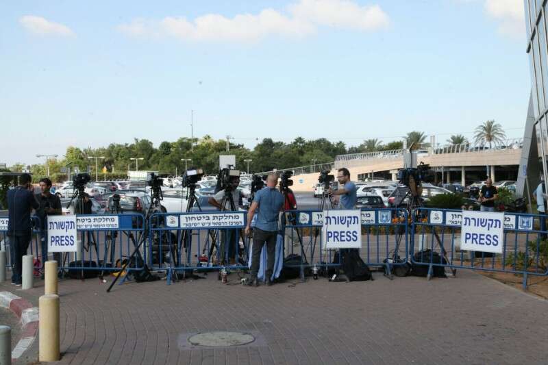 היערכות של התקשורת מהארץ ומהעולם, בבית החולים תל השומר, הבוקר // צילום: גדעון מרקוביץ'