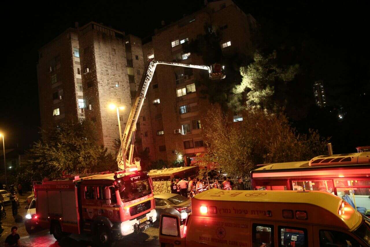 ירושלים: לוחמי האש פועלים בשריפה שפרצה בבניין מגורים ברחוב השח"ל בשכונת גבעת מרדכי. עד כה פונו מהמקום מהמקום 36 נפגעים לבתי החולים הדסה עין כרם, הדסה הר הצופים ושערי צדק, כל הנפגעים במצב קל, כולם נפגעו משאיפת עשן.