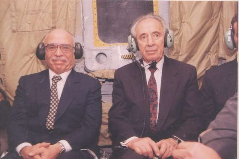 חלום השלום. עם חוסיין מלך ירדן לאחר חתימת הסכם השלום // צילום: מרכז פרס לשלום