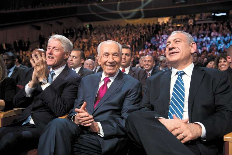 חוגג 90. עם רה"מ נתניהו ונשיא ארה"ב לשעבר קלינטון // צילום: זיו קורן