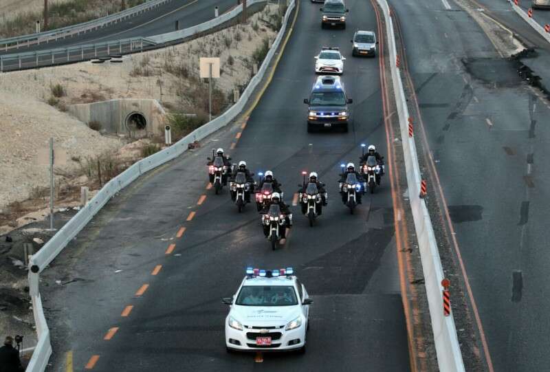 ארונו של פרס עושה את דרכו בשיירה למשכן הכנסת // צילום: אורן בן חקון