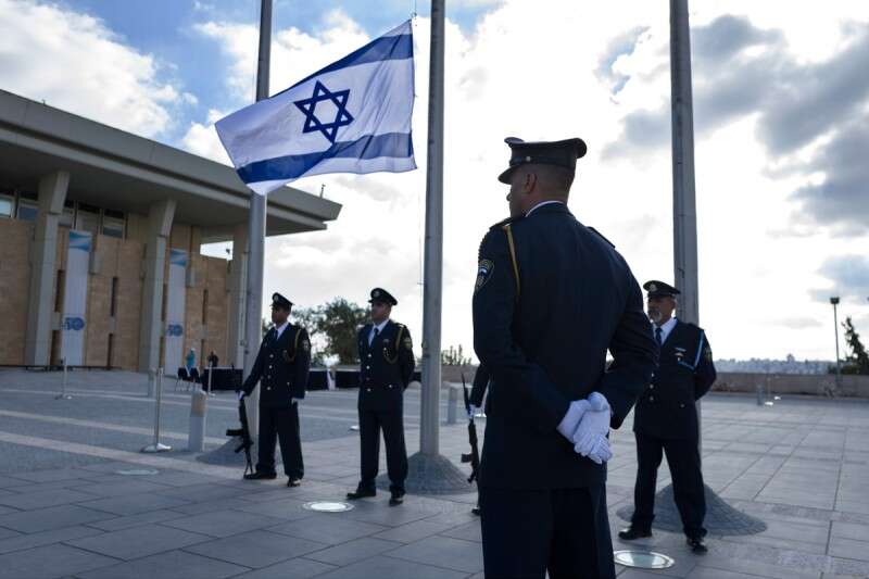 הורדת הדגלים ברחבת הכנסת לחצי התורן // צילום: אי.פי.אי