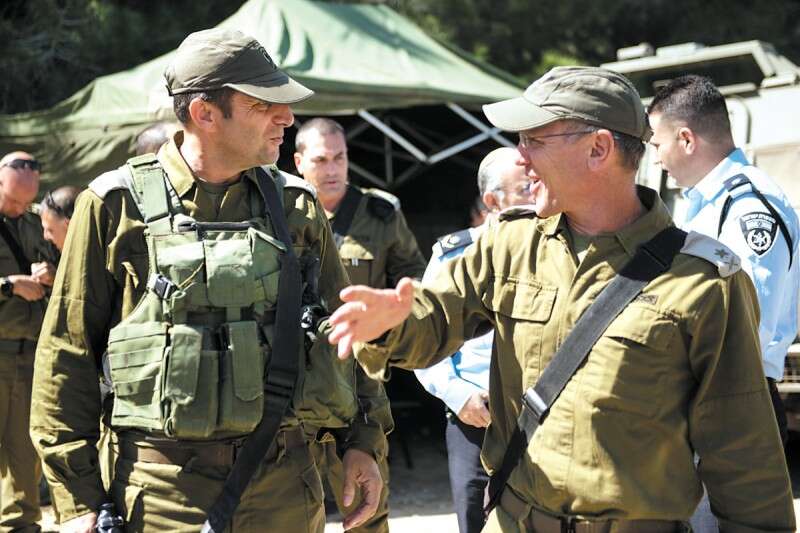 אלוף אלון (מימין) עם מפקד אוגדת עזה לשעבר, תא"ל איתי וירוב. "שלא נפחיד את עצמנו יותר מדי" // צילום: דובר צה"ל
