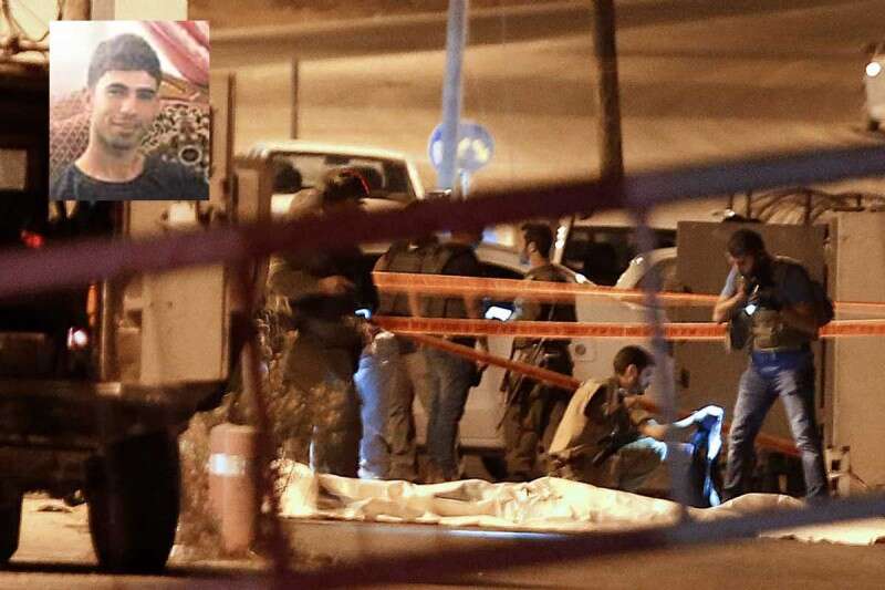מחסום "פוקוס" לאחר ניטרול המחבל. בתמונה הקטנה: השוטר הפלשתיני שפתח בירי // צילום: אי.אף.פי