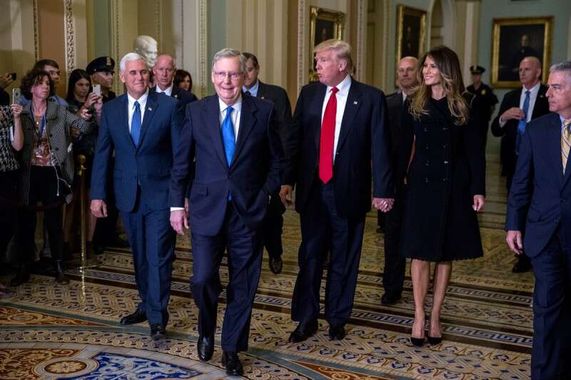 מלניה ודונלד טראמפ עם מקונל ופנס בקונגרס // צילום: אי.פי.אי