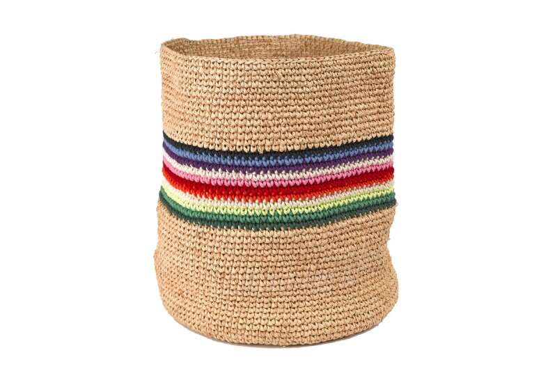 אתר House In Moda סל אחסון קטן עם פסים צבעוניים סרוג בעבודת יד 790 ש"ח במקום 930 ש"ח // צילום: יח"צ חו"ל