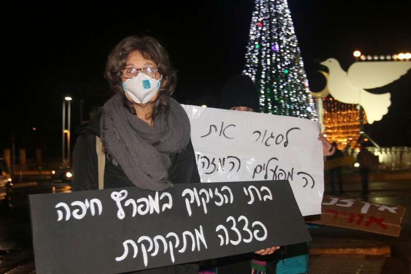 פעילי איכות סביבה מפגינים בחיפה, אתמול // צילום: הרצי שפירא