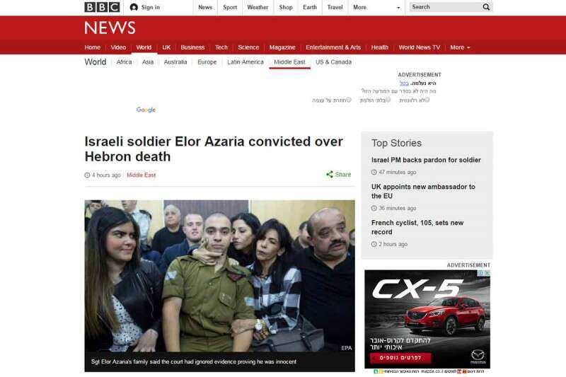 עם פרסום הכותרות הראשונות בעקבות הרשעתו של אזריה, השמיטו חלק מגופי התקשורת המרכזיים בעולם את העובדה שאזריה ירה במחבל פלשתיני. רק בעקבות פנייה של גופי ביקורת שונים, שונו הכותרות והציגו תמונה מדויקת יותר.