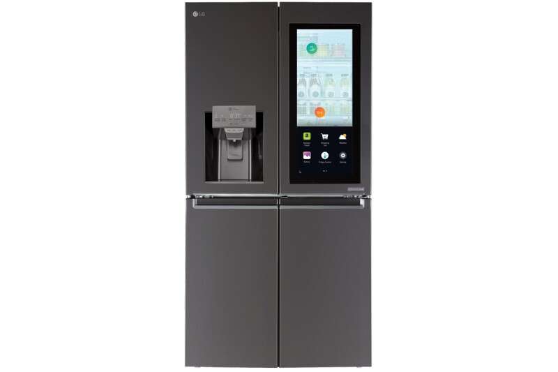 LG הציגה גם מקרר חכם ששמו InstaView, שמאפשר לדעת מה חסר בו כשאתם נמצאים בסופר ולחלופין מה יש בו, מבלי לפתוח את דלת המקרר - הקשה כפולה על מסך ה־29 אינץ' שעל הדלת תציג את תכולת המקרר.