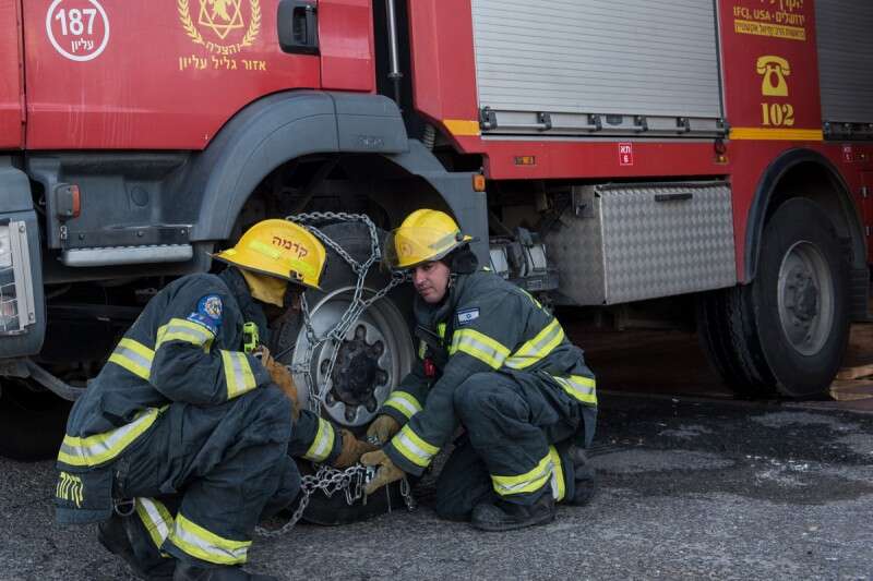 כבאים בצפת מתכוננים לשלג // צילום: אייל מרגולין/ג'יני