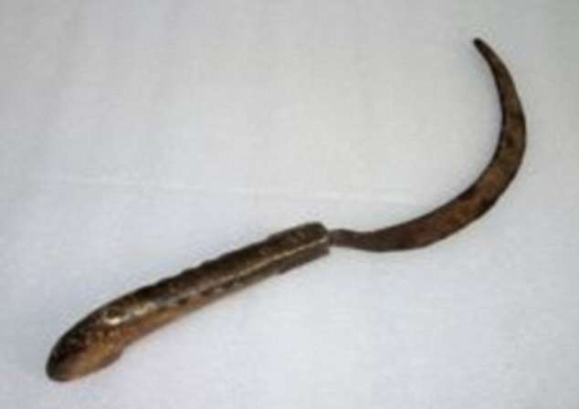 המגל החד והמעוקל, המשמש לחיתוך יבולים, הגיע לידי המשטרה, ביחד עם איבר המין הכרות.