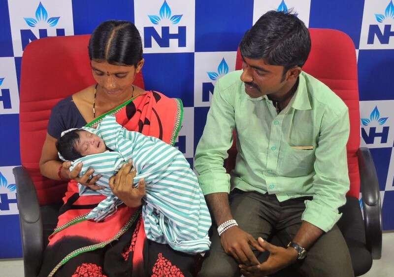 ההורים, לאליטמה בת ה-23 וצ'נאבאסבה בן ה-26, רצו להעביר את בנם לבית החולים האיכותי שבעיר בנגלור, אך חששו מהעלות הגבוהה הכרוכה בכך. אך המנתחים בבית החולים "נראינה" הציעו לטפל בתינוק, ששמו לא נחשף, בחינם. התינוק נכנס לניתוח בן שלוש שעות שעבר בהצלחה, כאשר כבר לאחריו הצליח לינוק מאמו בכוחות עצמו.