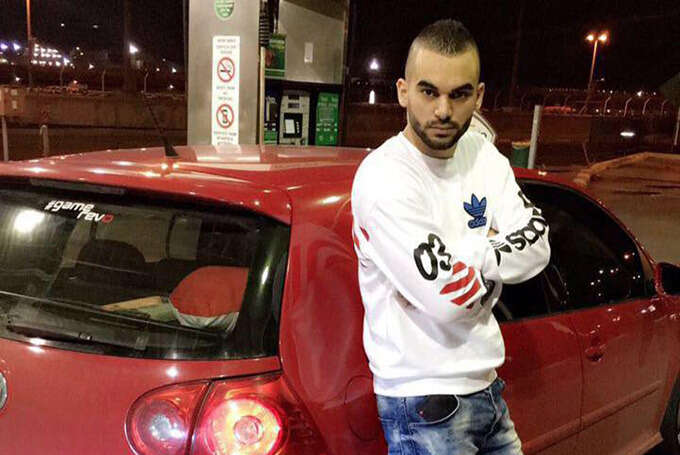 ההרוג מיאר זזיוד על רקע מכונית הגולף GTI שהתרסקה בתאונה