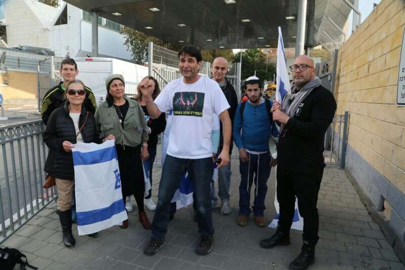 הפגנת תמיכה באזריה מחוץ לביהמ"ש // צילום: גדעון מרקוביץ'