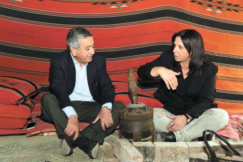 שכנות טובה ויחסים חמים. מורן עם טלאל אל־קרנאוי, ראש עיריית רהט // צילום: דודו גרינשפן