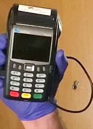 מכשיר גיהוץ האשראי שנתפס בבית החשוד // צילום: Tewkesbury Police