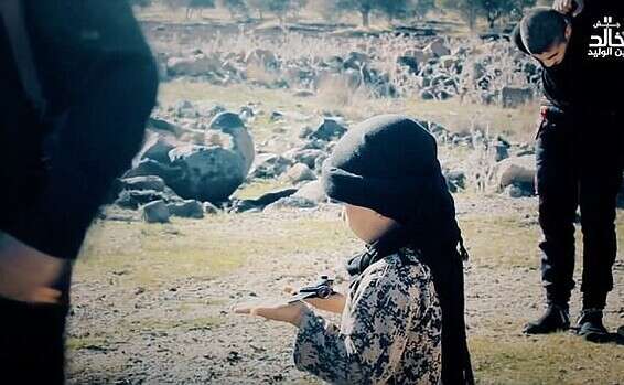 בסרטון חדש שפרסם הארגון נראה ילד בן 6 כשהוא מסייע בהוצאה להורג בעריפת ראש של שניים מקורבנות הארגון הרצחני.