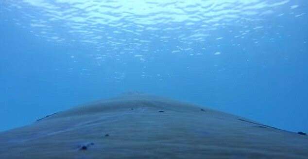 מלבד להקת דגים אקראית לא נראה כי המים סביב הלווייתנים שוקקי חיים. בסרטון נראה אחד הלווייתנים כשהוא עולה אל פני המים על מנת לנשום ומתיז סביבו סילון מים אדיר.