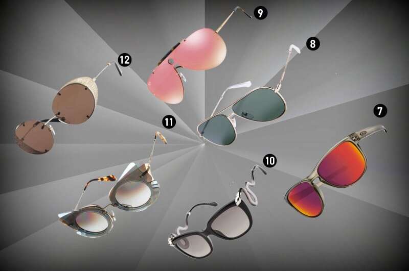 7. אוקלי, איי אופטיק, 849 ש', 8. פוליס, 1,150 ש', 9. רייבן, איי אופטיק, 900 ש', 10. רוברטו קוואלי, אירוקה, 1,609 ש', 11. מיו מיו, אופטיקנה, 1,899 ש', 12. דיסקוורד, אירוקה,1,399 ש'