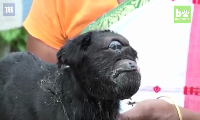 העז שיצאה לאוויר העולם לפני שמונה ימים נולדה עם עין אחת עקב מום מולד. תושבים שרואים אותה לראשונה מופתעים ומבולבלים.