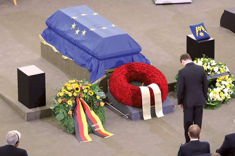 בשל תרומתו המשמעותית לשינוי פניה של אירופה, החליטו ראשי האיחוד האירופי בפעם הראשונה להיפרד ממנהיג ומדינאי בטקס אשכבה כלל־אירופי, שנערך באולם המליאה של הפרלמנט האירופי.